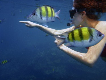 • Pimalai Resort Activities: Beautiful girl doing Snorkelling in Koh Rok in The Lanta Marine National Park. Koh Lanta. Krabi. Thailand.