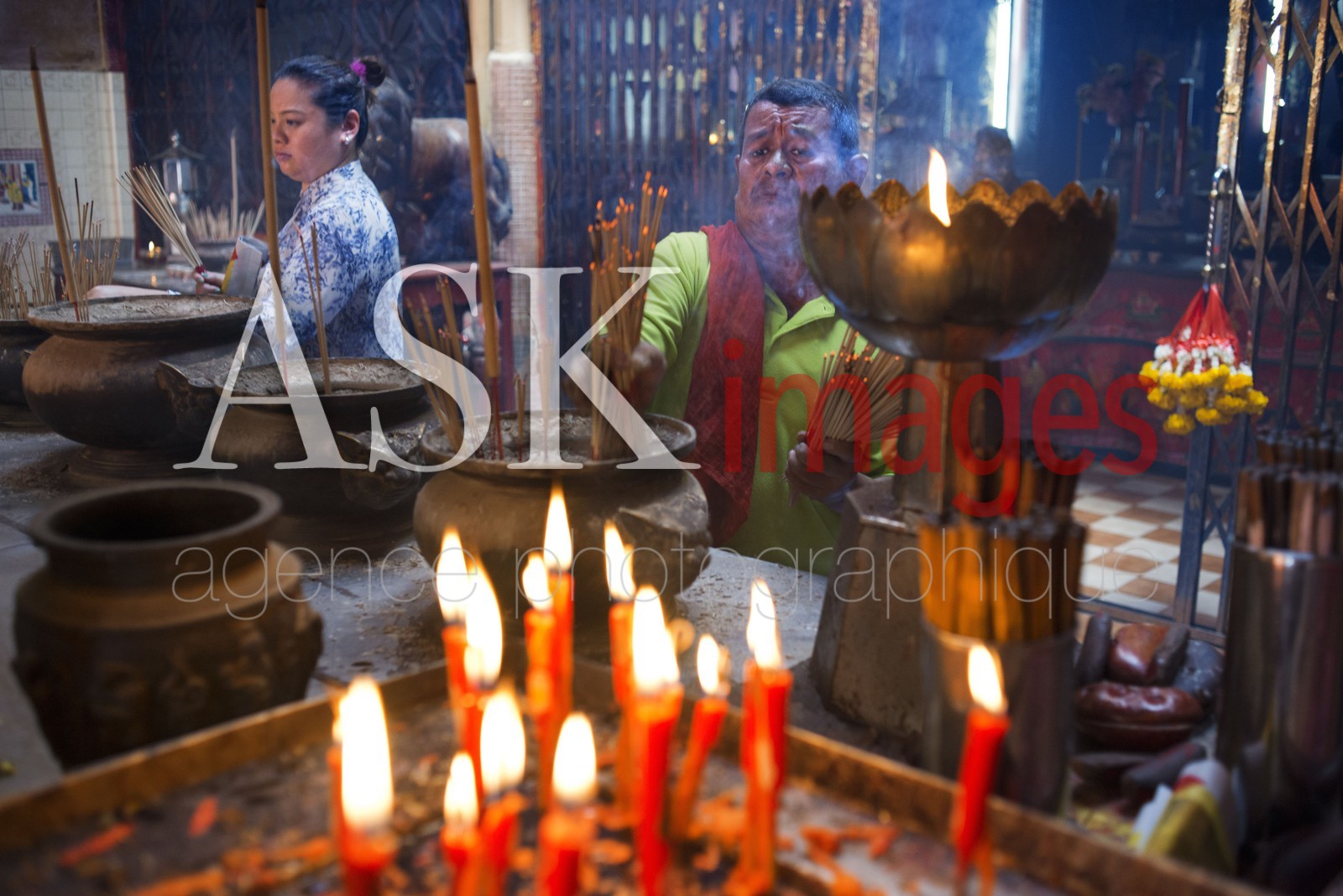 DescriptionPeople prayer with candles incense sticks, Temple complex in the Trang Buddhist Temple. Trang, also called Mueang Thap Thiang, is one of the southern provinces of Thailand